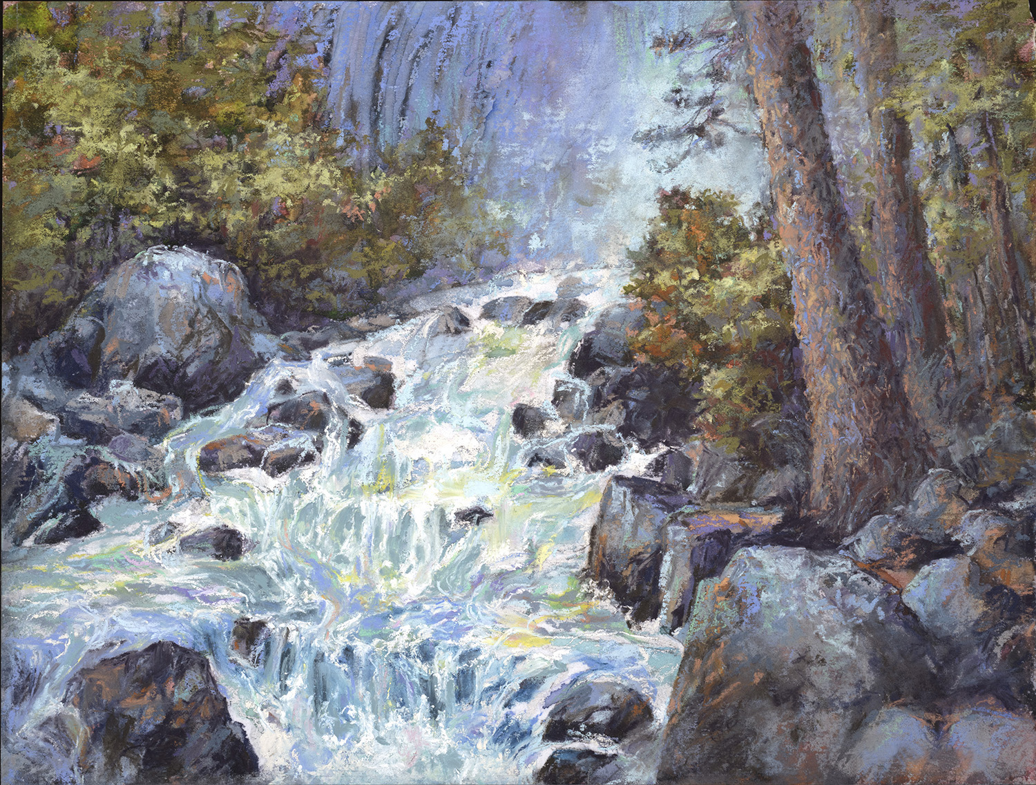 Her artistic practice (both in oils and pastels) employs underpainting techniques on surfaces that range from canvas to soft pastel papers, experimenting with texture to reveal movement in nature. Brown works to create “an impressionistic luminosity with unique marks of color and tone” that reveals “the light in nature and in people,” evident in the works that garnered her the Division’s award.