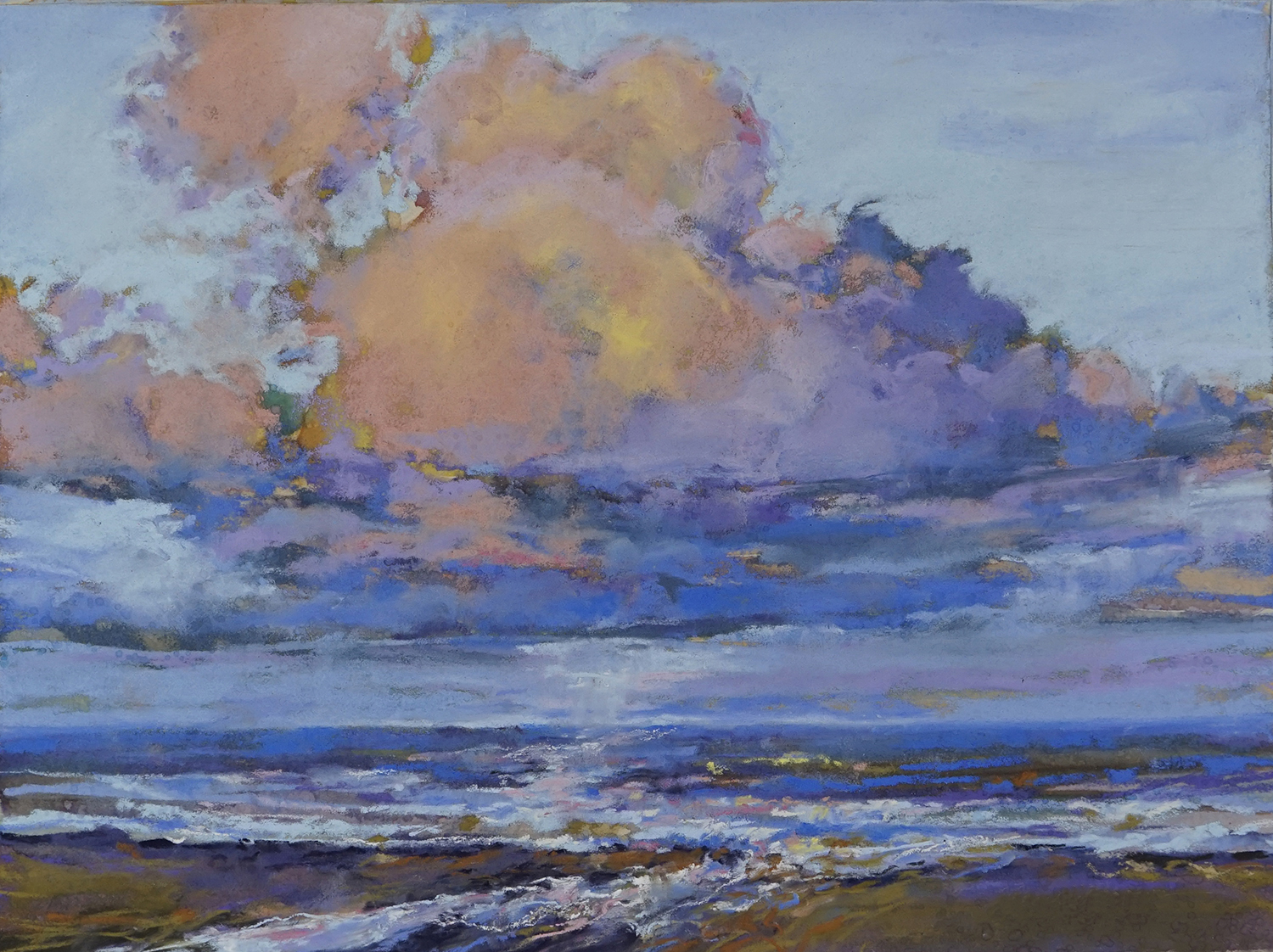 Brown moved from California to Delaware two years ago, attracted by the “natural and historic beauty reflected by nature conservancies, towns and homes, museums, waterways, and sense of community.” She’s busy “adventuring” in her adopted state, finding inspiration in the changing seasons and skies and keeping up her busy schedule of plein air oil painting, teaching pastels, and nature journaling, a practice she’s continued since her school years.